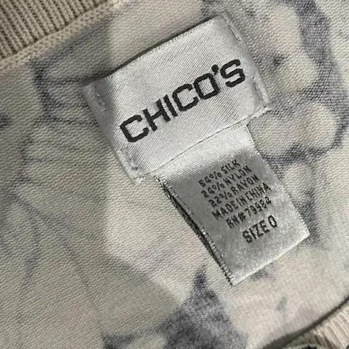 CHICOS Cardigan Womens Sz Small Silk Floral Print Stone & Black coloring Button Down Very gently... Show more