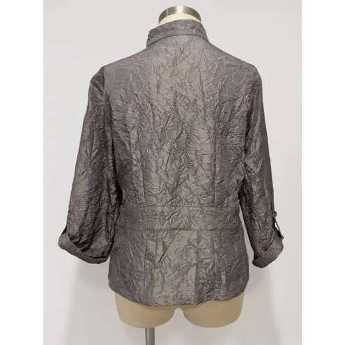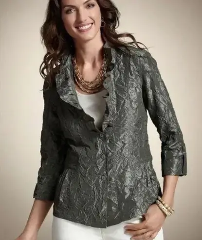 Chicos Jolene Crinkle Metallic Ruffle Collar Button Up Jacket Size 1 (Medium) Excellent pre-loved... Show more