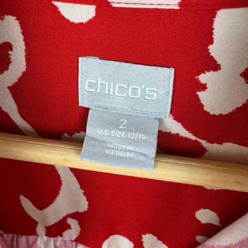 Keywords: Chico's shirt, Red blouse, Love print, Heart pattern, Leopard print, Button up shirt, Long sleeve, Collared shirt, Women's fashion, Casual wear, Date night outfit, Workwear, Modal fabric, Size 2, Designer blouse, Chicos Blouse Love Print Shirt Heart Pattern Red Top Valentine Button Down Long Sleeve Animal Print Y2K Statement Lightweight Modal Size 12 14 Romantic Date Night Trendy Bold