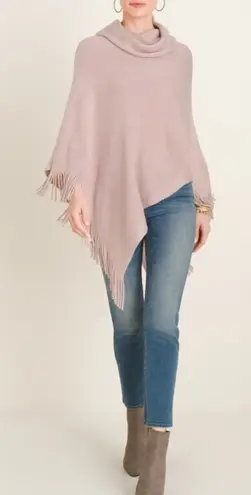 Chico’s Shine Fringe Poncho Cowl Neck Pink And Metallic Gold One Size Color: pink with gold speckle... Show more