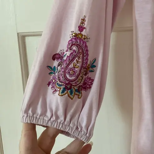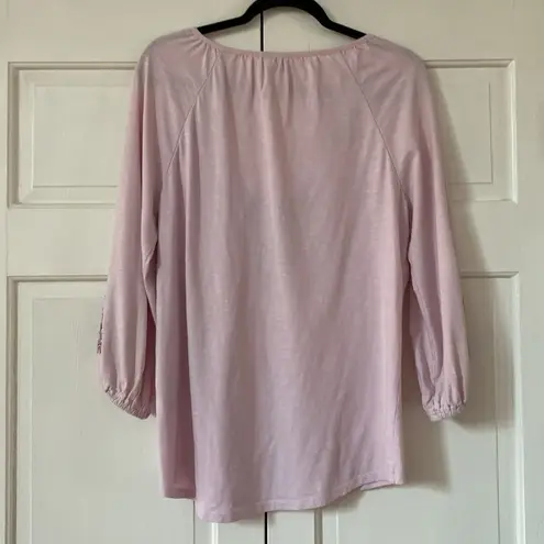 Chico’s Size 1 Embroidered Tassel Top in Pink Embroidery Tassels Chicos Medium An easy, cotton top... Show more