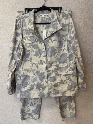 Chicos Womens Size 2 (L/12) MILITARY TWILL UTILITY JACKET SMOKEY TAUPE Set jacket and pants new with... Show more