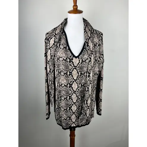 Chicos 3 XL Snake Print Metallic Knit Sweater Scarf Top Women Black Beige Gold: A striking Chico's s... Show more