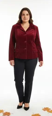 Chico’s Red Velvet Lined Button Down Jacket Women’s Size 1 (Medium) Elevate your wardrobe with this... Show more
