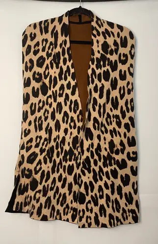 Stylish open front cardigan vest perfect for layering. The sweater vest features a bold leopard prin... Show more