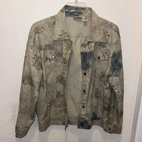 Stylish denim jacket with a floral pattern. Features button closure and chest pockets. Perfect for c... Show more