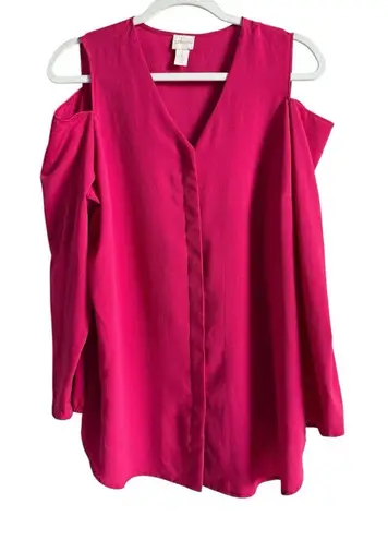 Chico’s pink cold shoulder blouse is in great preowned condition. Size Chico’s 2 equivalent Medium... Show more