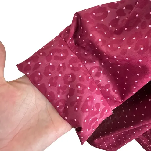 Excellent preowned condition. Burgundy/white polka dot roll tab sleeve full zip snap up lightweight... Show more