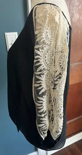 Chiffon Top - Black With Cream Crocheted Lace Sleeves Size M - $8 (82% Off Retail) - From Riain