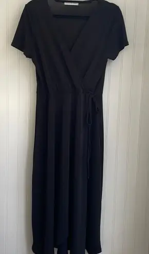 In excellent used condition! This Chris & Carol dress is a long midi length with a faux wrap style and short sleeves. It has a V-neck and a tie at the waist. It’s a beautiful little black dress! The length from the waist to the hem is approximately 30 inches. The length from the shoulder to the hem is approximately 43 inches. From a smoke free home.