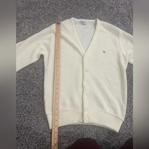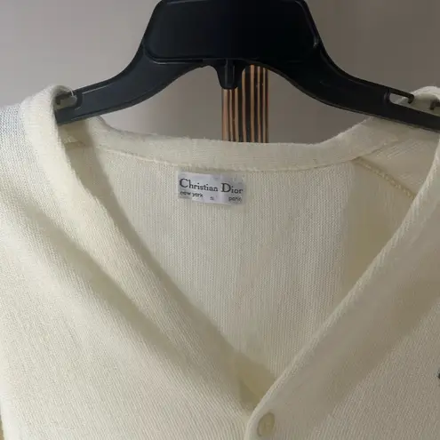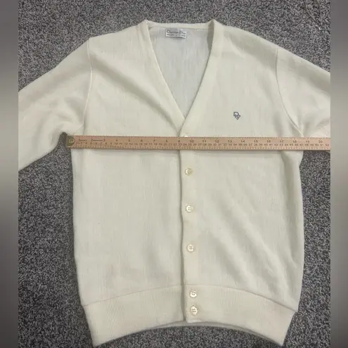 Chic Dior cardigan in ivory. Features button-up front and logo detail. Slight wear, visible in phot... Show more
