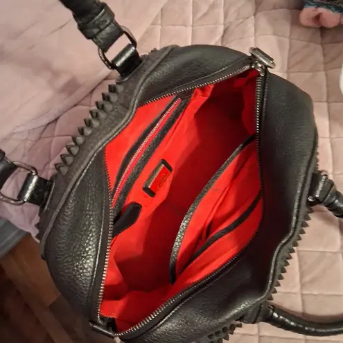 Elegant black shoulder bag with signature studs. Features sturdy handles. Perfect for a chic look.
