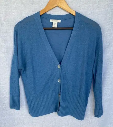 Christian Siriano Linen Blend Blue Ribbed Lightweight Cardigan Sweater - $26 - From Heather
