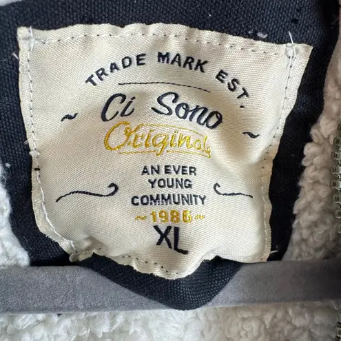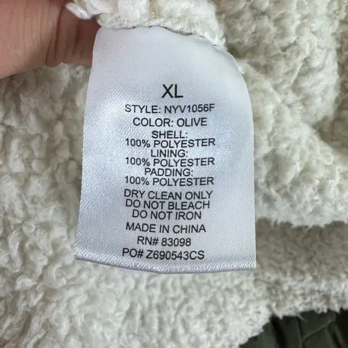 Excellent preowned condition. Ci Sono Olive Green Hooded Sherpa Lined Full Zip & Snap Up Puffer Vest... Show more