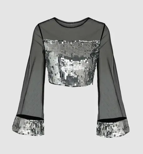 Mesh & Sequin Bell Sleeve Crop Top Black Size XS - $34 - From Caroline