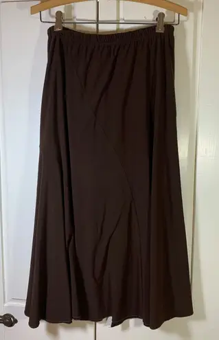 Wash wear present. A versatile brown midi skirt by Clara S. This skirt features a comfortable elastic waistband and a flattering flowy silhouette. A stylish side slit adds a touch of modern flair to this piece. Perfect for casual outings or a boho-inspired look. Type: Skirt Style: Flare Skirt Length: Long Department: Women Material: Polyester, Rayon, Spandex Pattern: Solid Accents: Slit Fabric Type: Knit Features: Slit, Stretch, Elastic Waist Closure: Pull On Rise: Mid Occasion: Casual Season: Spring, Summer, Fall Garment Care: Handwash Country of Origin: United States Keywords: Clara S, midi skirt, brown skirt, flowy skirt, elastic waist, side slit, boho skirt, casual, everyday wear, comfortable, modest, travel