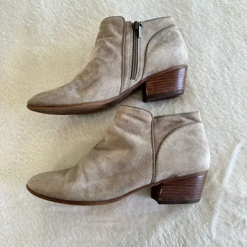 Clarks Ankle Boots Womens Size 10M Beige Suede Almond Toe Side Zip Leather Bootie Indigo by Clarks... Show more