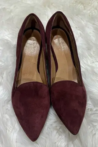 Like New Clarks Inigo Wine Suede Pointed Toe Kitten Heels Sz 7.5 Leather upper, Back ankle padding,... Show more