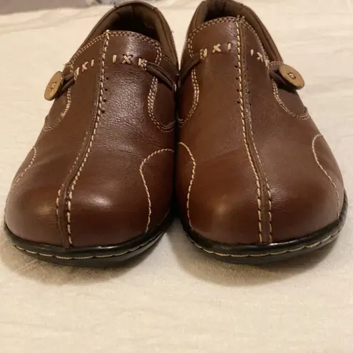 New Without Box Clarks Brown Leather Slip On Shoes Women’s Size 8 Bendables Sixty Delta Slip On Spli... Show more