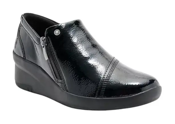 Clarks Collection Women's Suttyn Zip Bootie with Wedge Heel Black Crinkle Patent Size 7.5 NEW Clar... Show more