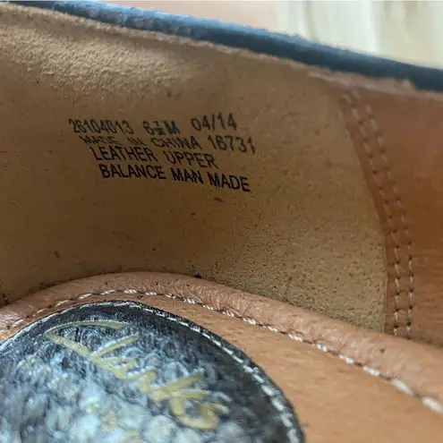 Clarks metallic leather loafer. Reptile skin / scale texture. Black and silver color. Slip on style.... Show more