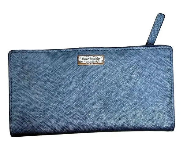 CLASSIC KATE SPADE Bifold Snap Wallet W/ Zipper Gold Hardware 7" x 4" Blue Gray Preowned- see photos... Show more