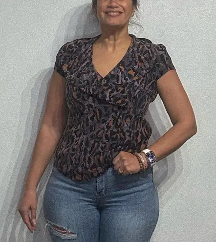 Classiques Entier Leopard Print Silk Ruffle Blouse Sz S Purple - $50 - From Bryanette