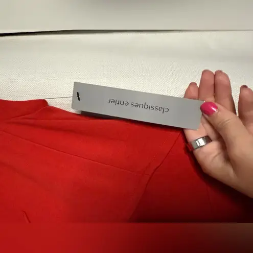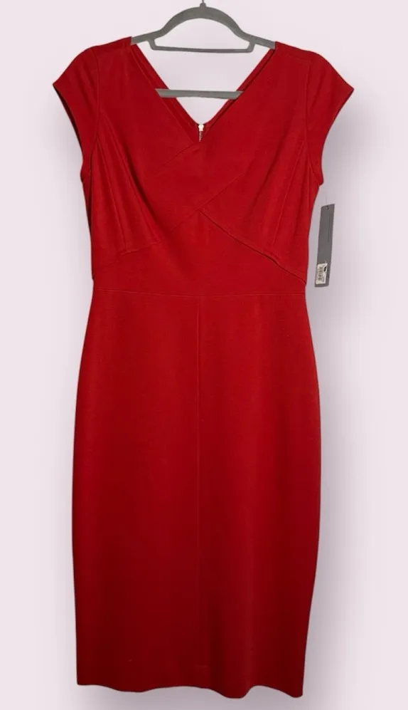 Brand New With Tags. Classiques Entier Red VNeck Sheath Dress. True red color. V neckline. Crossing seams on front. Cap sleeves. Exposed zipper all the way up the back. Knee length. Some stretch. Size 2. Ptp: 18 - 19 1/2 inches Waist: 14 inches Length: 39 3/4 inches *Measurements upon request if not already included. Offers always welcome and considered. Pet friendly, smoke free home.*
