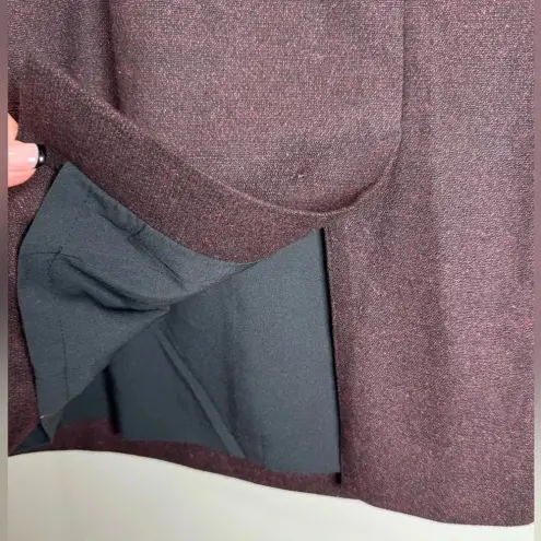 Classiques Entier Wool And Silk Blend Sheath Dress Women’s Size 10. Sleeveless, fully lined, side zipper, cowl neck, plum color. Original belt is missing, doesn’t take away from the dress at all. Approximate measurements 39” top of shoulder to hemline, 18” across chest.