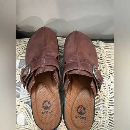 Crocs Cobbler Platform Brown Nubuck Leather Buckle Mule Shoes Womens Size 9 Size: 9 Measurements:... Show more