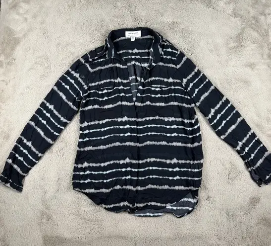 Keywords: Cloth & Stone, Anthropologie, Tie Dye Shirt, Button Down Shirt, Relaxed Fit, Casual Top, Women's Shirt, Long Sleeve Shirt, Boho Style, Contemporary Fashion, Size M, Rayon Shirt, Striped Shirt