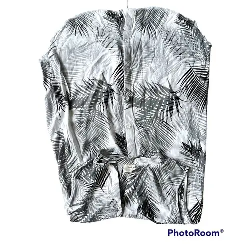 Cloth & Stone Palm Print Dress Medium Hi Low Fringed Raw Hem Front Back Buttons Cover Up Sleeveless... Show more