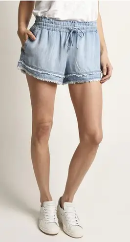 Double tiered raw hem Elastic waist with drawstring Pockets Excellent condition