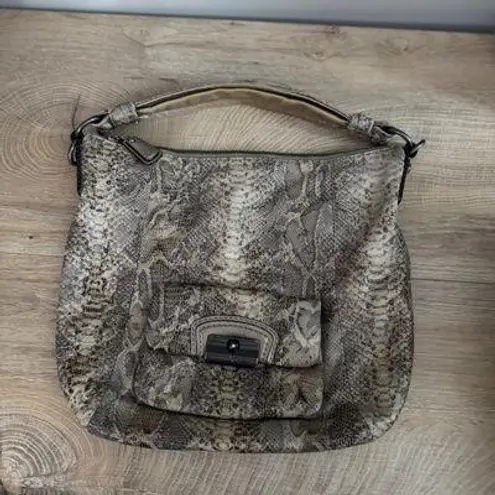 Coach Bag Kristin Python Snakeskin Print Shoulder Purse Handbag Neutral Hobo Exterior Material: Lea... Show more