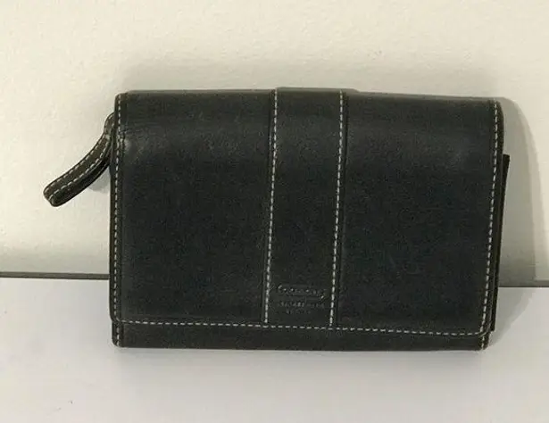 Coach Black Signature Leather Compact Clutch Wallet. Fold top closure for central compartments. Open... Show more