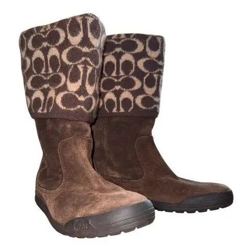 Step into winter with Coach's stylish brown boots, featuring a sophisticated monogram print and luxu... Show more