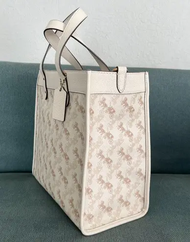 Printed coated canvas and polished pebble leather Snap closure, fabric lining Handles with 5 3/4" dr... Show more
