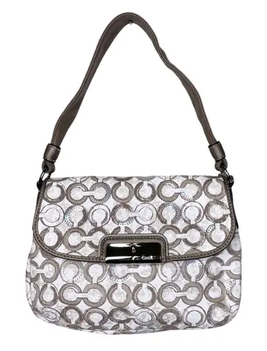 Coach Kristen OP Art Sequin Bag Top Handle Satchel Style: 45088 White, grey, pewter logo print wit... Show more