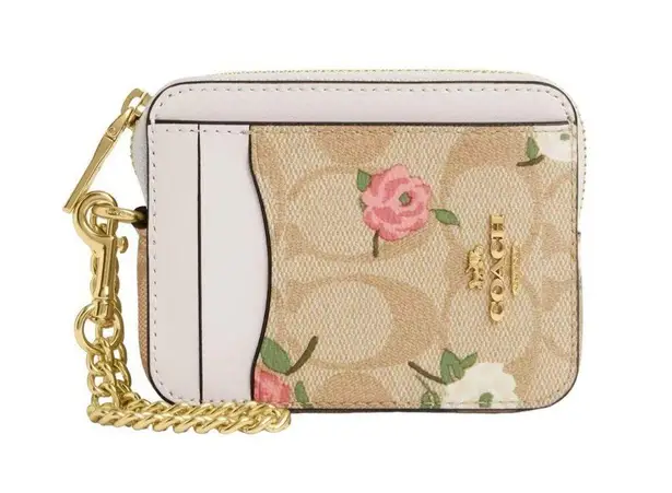 Color: Gold/Light Khaki Chalk Multi Signature coated canvas and smooth leather Two credit card slots... Show more