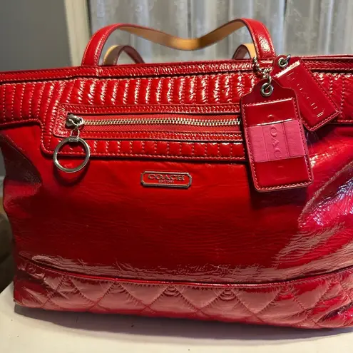 Make a bold statement with the Coach Red Croc-Embossed Tote Bag, featuring a striking red hue and a... Show more