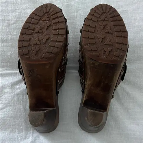 Brand: Coach Material: Wooden and Fabric Color: Brown Size: 7 Heel Height: 4 inches Conditio... Show more
