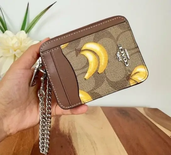 NWT Coach Zip Card Case In Signature Canvas With Banana Print Color Signature Canvas/Silver/Khaki/Da... Show more