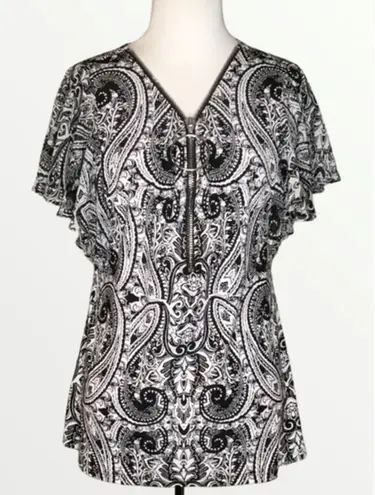 COCO BIANCO Black & White Paisley Zip Front Flutter Sleeve Top S - $22 - From Latricia