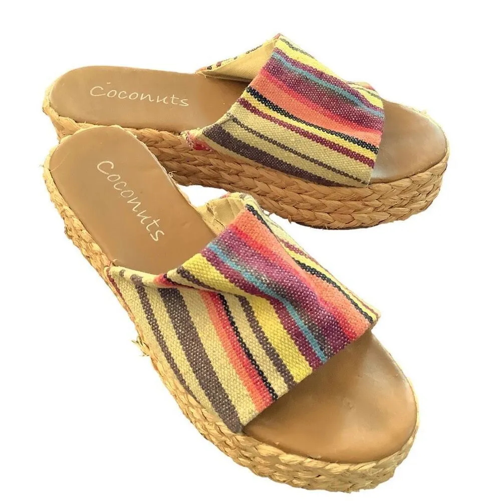 Coconuts Canvas Stripe Woven Platform Espadrille Mule Sandals Women’s Size 9 Yellow - $28 - From Buy Ma