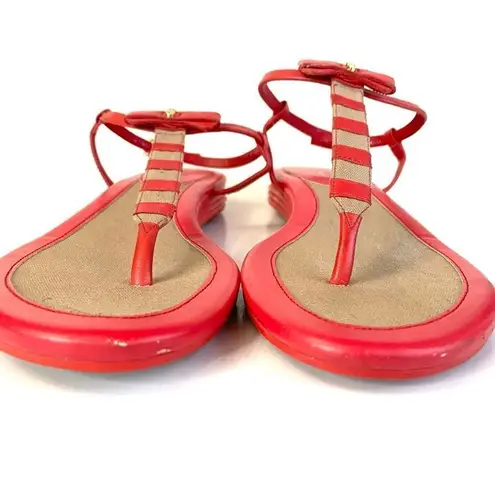 Cole Haan Red Natural Bow Stripe Tstrap Thong Sandal Ankle Womens Size 10 Overall good condition wi... Show more