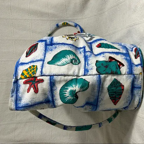 This cute seashell themed tote is made from 100%cotton. It has a sturdy base, a zippered top closure... Show more