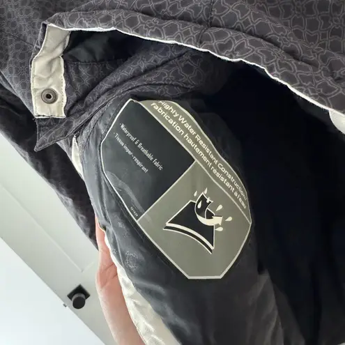 Size small. Lots of pockets for storage. Waterproof and warm!