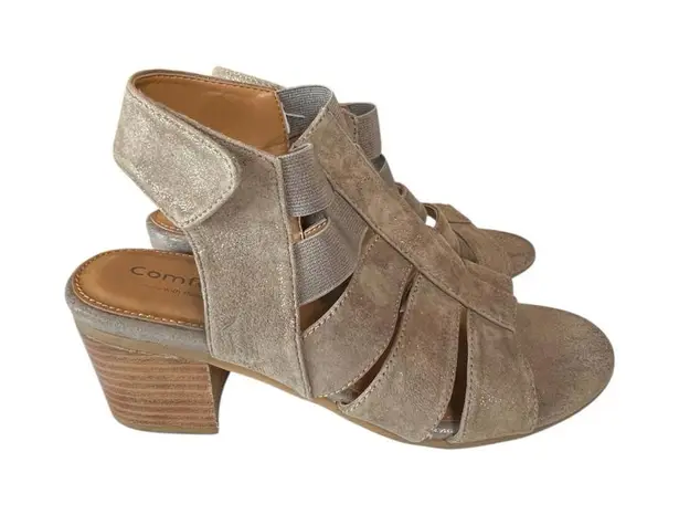 Step into comfort and style with these Comfortiva women’s sandals featuring a soft leather upper in a versatile taupe shade. Designed with Pillowtop® cushioned insoles for all-day support and flexible elastic side straps for easy slip-on wear. Chic cutout detailing and a stacked block heel add a modern look perfect for warm-weather outfits — from casual denim to sundresses. Pre-owned with light wear on soles and uppers consistent with gentle use. Size 7.5M. Leather upper, man-made lining and sole. Made in China. A great find for fans of comfort shoes with style! #Comfortiva #StrappySandals #BlockHeel #LeatherShoes #WomensStyle