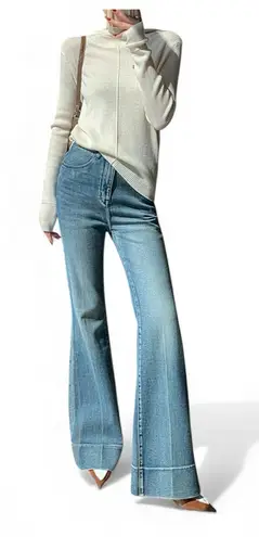 Super cute, stretchy & comfortable flared wide hem denim Medium Wash with some fading See pictures... Show more