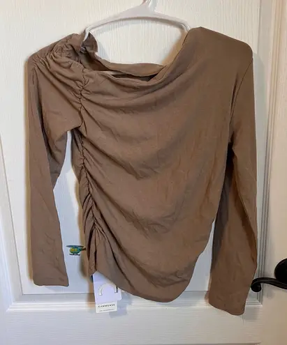Commense Women's Ruched Long Sleeve Pullover Blouse in brown, size Small. This stylish top features... Show more